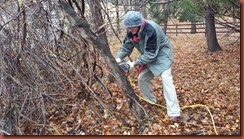 George got us a chainsaw, which, of course, we had to take out for a test drive right away, despite it being really cold and wet outside! New toys and all…